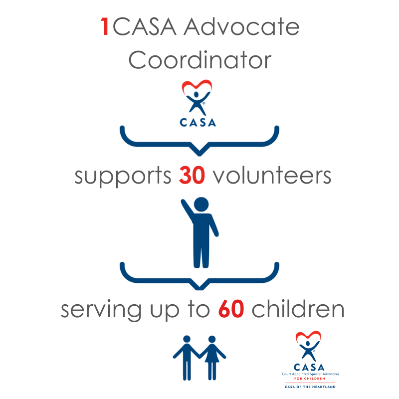 CASA volunteers watch over and advocate for abused and neglected children. They make sure children do not get lost in the overburdened legal and social service systems, or languish in inappropriate group or foster homes. A CASA volunteer stays with a case until it is closed, and the child to whom they are appointed is placed in a safe, permanent home.